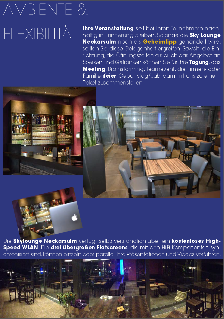 In einem einmaligen Ambiente erwarten wir Euch täglich ab 12 Uhr über den Dächern von Neckarsulm