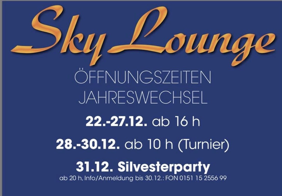 es freut uns euch mitteilen zu dürfen, das wir ab kommenden Mittwoch dem 20.05 die Skylounge-Carambolage für euch öffnen dürfen. Natürlich ist das mit gewissen Verordnungen und Pflichten der Fall.
